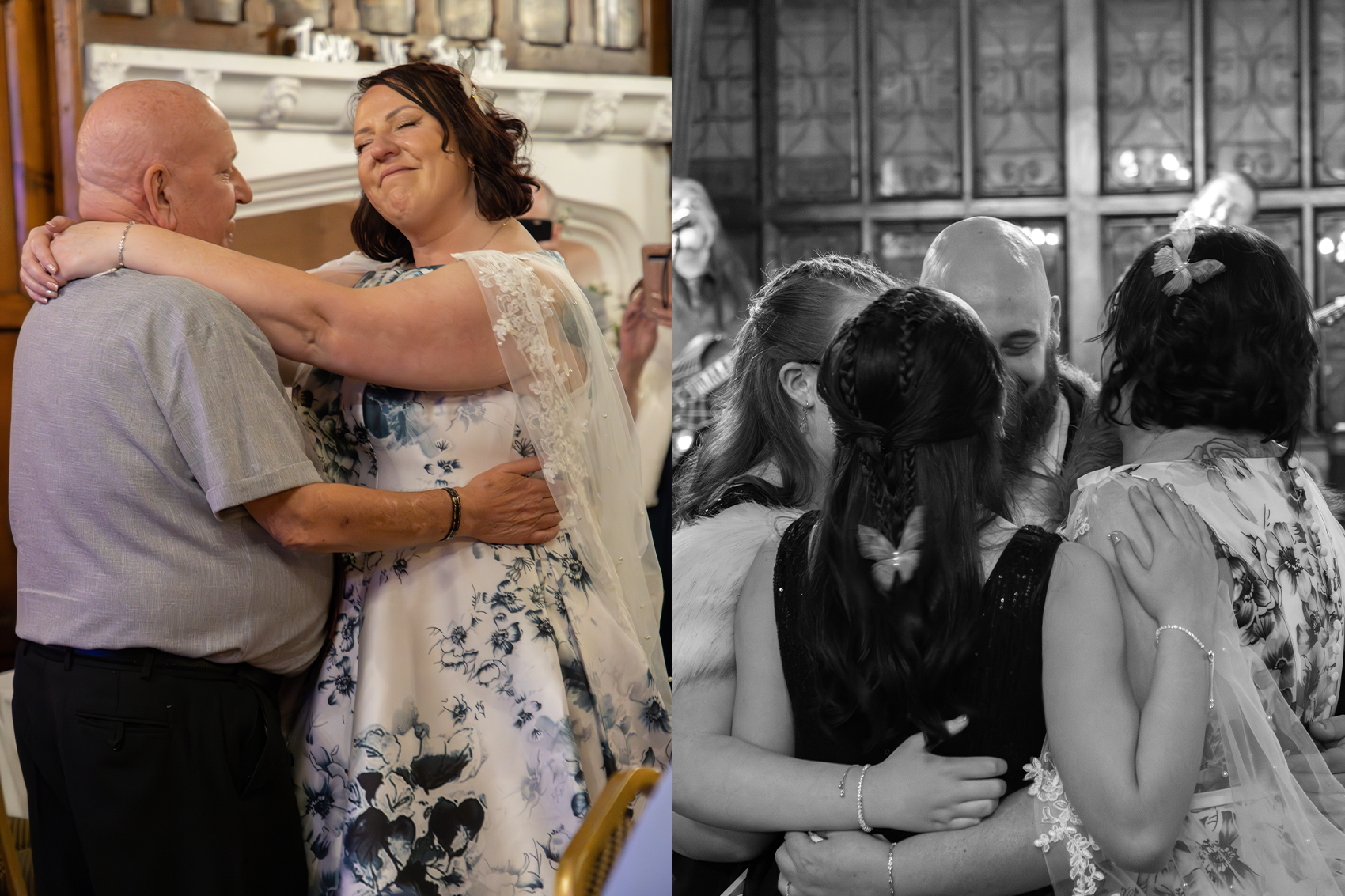 The day began with one of the most touching moments I’ve witnessed while filming. Amanda shared her dress reveal first with her step dad and dad, both overcome with emotion. Seeing their reactions quickly brought Amanda and her mum to tears too, setting the tone for a day led by feeling rather than formality.